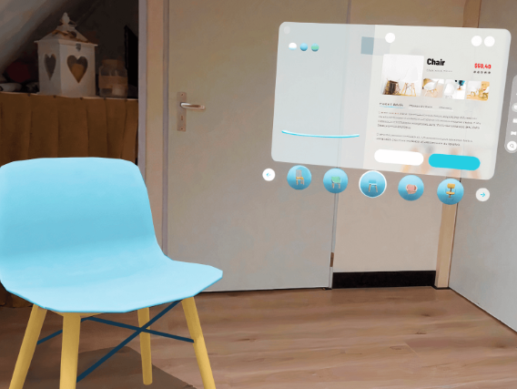 in the image below this is a showing a different aspect of shape XR, where users can basically see through the VR to the real world and still use the tool and create object and scenes. This feature can be useful if a user is wanting to design a chair for example and they and to make sure the specific design will work with the room, the proportions are correct or if they just like it since they can now see it; this can also be good if they want to make a proportionate scene and using the real world to trace from which would be really accurate to use.
