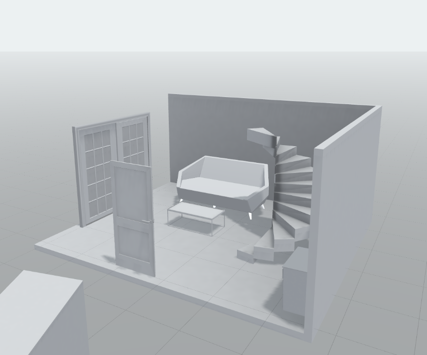 In shapes xr, this seemed less artistic and more architectural, this was because there wasn’t if any sketchy, free draw option, this software had assets you could shape and manipulate like cubes, spheres ect with these meshes I could resize/ scale them how I wanted, this also came with measurements so I could get as accurate as I wanted. I decided I wanted to create a room from a house, shaping and scaling walls and a floor then using the provided asses to import a chair and other house hold objects into my room using the same method of resizing to make them fit in the scene.